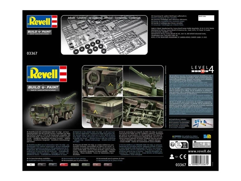 Sestavite realistični vojaški tovornjak v merilu 1/35. Ta model tovornega vozila MAN 10T MILGL 8x8 ponuja podrobno izdelavo, idealno za izkušene modelarje in navdušene začetnike. Namenjen je samostojni sestavi in barvanju za maksimalno ustvarjalno doživetje.