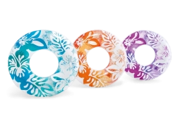 Kakovosten napihljiv obroč INTEX s premerom 91 cm je idealna izbira za vodne igre in sprostitev ob bazenu. Zahvaljujoč živahnemu tropskemu dizajnu in zanesljivi konstrukciji nudi varno lebdenje ter odlično vidnost na vodi.