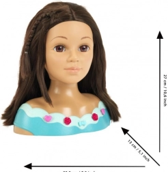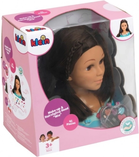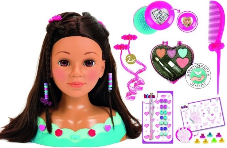 Glava za česanje in ličenje Mia ponuja vse, kar mali frizerji in vizažisti potrebujejo. Dolge, pralne lase je mogoče česati, krtačiti, plesti in krasiti s sponkami ali kroglicami. Priložena otroška kozmetika je dermatološko testirana, zato je varna za igro in nežno otroško kožo.
