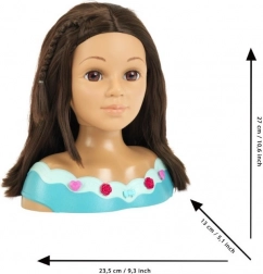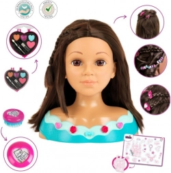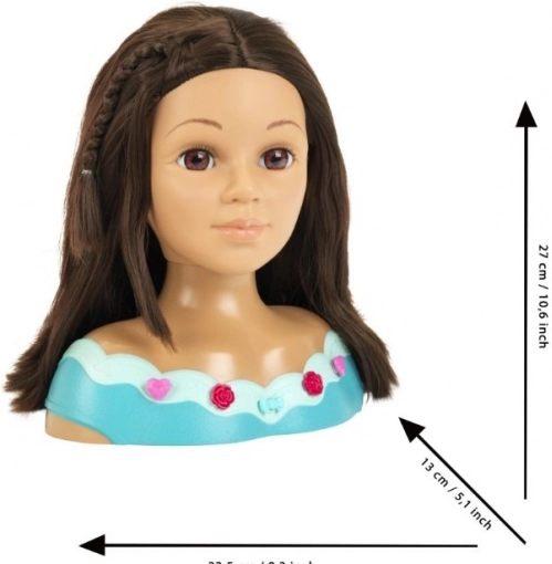 Realistična glava z dolgimi, pralnimi lasmi omogoča krtačenje, česanje ter ustvarjanje kit in pričesk kot v frizerskem salonu.