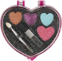 Sijaj za ustnice, senčila za oči in rdečilo v zapiralnem srčkastem etuiju so varni za otroško kožo in idealni za prvo ličenje.