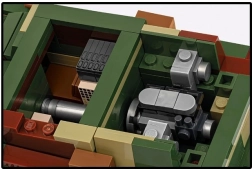 Vključuje podrobno minifigurico z dodatki ter belo tablico z imenom in merilom za privlačno predstavitev modela.