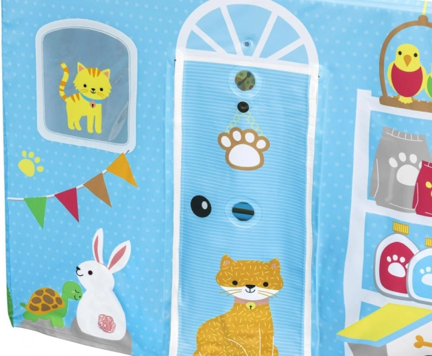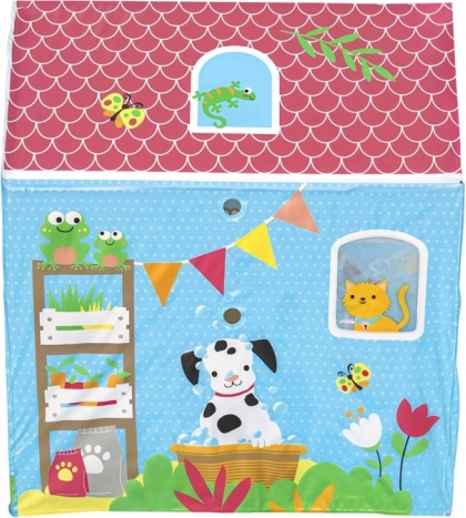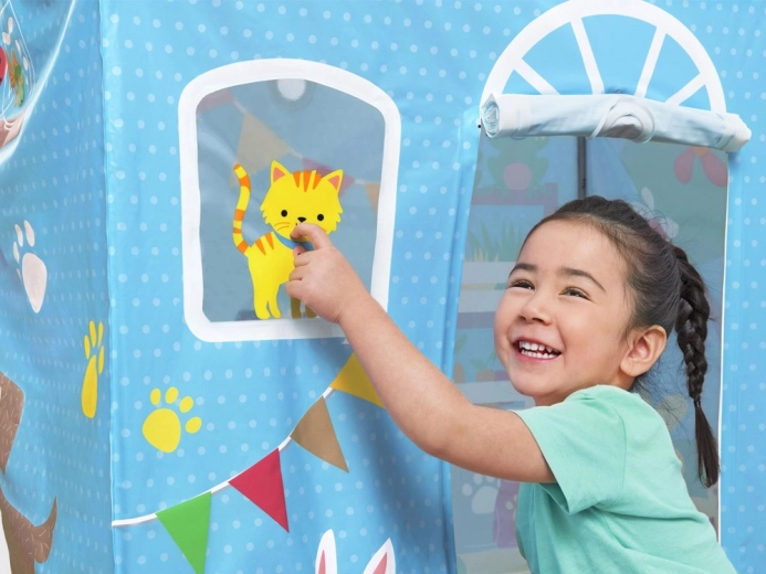 Vesele barve in potiski živali dajejo hišici igriv značaj in privabljajo vsakega otroka k zabavi in raziskovanju.