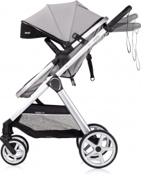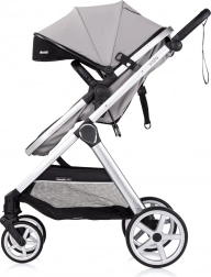 CHIPOLINO Vista Cloud Grey je praktičen voziček 2v1, ki združuje globoko košaro in športni sedež v eni rešitvi. Zaradi pametne zasnove sedežno enoto preprosto preoblikujete v košaro za novorojenčka in nazaj, z možnostjo namestitve v smeri ali proti smeri vožnje. Lahkoten aluminijast okvir z eloksiranim učinkom in vzmetenje na vseh kolesih zagotavljata udobno in stabilno vožnjo v mestu in parku.