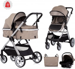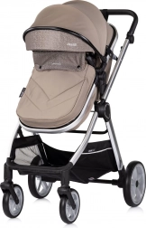 CHIPOLINO VISTA 2v1 je vsestranski voziček, ki raste z vašim otrokom od rojstva do malčka. Sedežno enoto zlahka spremenite v globoko košaro za novorojenčka, možnost namestitve v smeri ali proti smeri vožnje pa voziček prilagodi trenutnim potrebam. Lahek eloksiran aluminijast okvir in kakovostno vzmetenje vseh koles zagotavljata gladko in udobno vožnjo v mestu in parku.