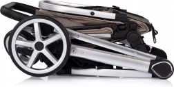 Za udobje otroka poskrbijo nastavljiv naslon s 3 položaji, oblazinjen 5-točkovni varnostni pas in snemljiv varovalni lok z oblogo iz eko usnja. Starši bodo cenili po višini nastavljiv ročaj, prostoren shranjevalni koš in varnostni pašček na ročaju. Nastavljiva strehica z odstranljivim senčnikom in okencem nudi odlično zaščito in pregled. Del opreme sta oblazinjen toplejši pokrivalo za noge in previjalna torba za udobna potovanja.