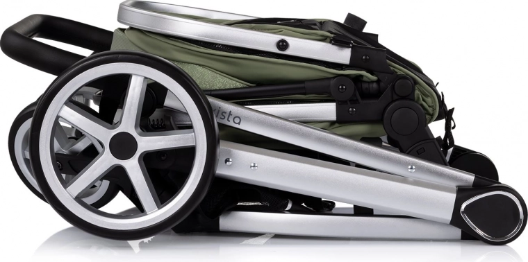 Chipolino Vista Basil je praktičen kombinirani voziček, s katerim zlahka preklopite iz načina za novorojenčka na udoben športni sedež. Zahvaljujoč lahkemu aluminijastemu okvirju z eloksiranim učinkom in vzmetenim kolesom se odlično znajde v mestu in na tlakovcih. Vrtljiva sedežna enota omogoča vožnjo v smeri ali nasproti smeri vožnje, medtem ko po višini nastavljiv ročaj, oblečen v eko usnje, zagotavlja udobje staršem.