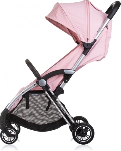 CHIPOLINO Illusion Pink Marshmallow je praktičen voziček, ki raste z vašim otrokom od rojstva do 22 kg. Z enim pritiskom ga enostavno zložite v kompaktno obliko, zato je popoln za mesto, avto in javni prevoz. Velika strešica z zračnim panelom ščiti pred soncem in zagotavlja prijeten pretok zraka.
