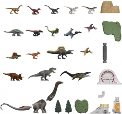 V kompletu je 18 mini dinozavrov in 4 deli okolja. Otroci zlahka postavijo vrata, skale in drevesa ter odigrajo svoje najljubše zgodbe JURASSIC WORLD.