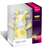 Ta mehka plišasta žirafa služi kot pomirjujoča nočna luč, ki nežno osvetli otroško sobo. Samodejno se spreminjajoče barvno svetilce (7 barv) ustvari prijetno vzdušje za lažje uspavanje.
