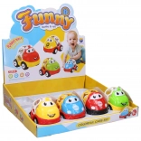 Prisrčen rožljajoči avto velikosti 9 cm bo razveselil vsakega otroka. Zahvaljujoč prostim kolesom se zlahka premika in oddaja prijeten zvok, ki spodbuja čutno zaznavanje. Na voljo je v več barvnih različicah in dobavlja se v praktičnem display boxu.