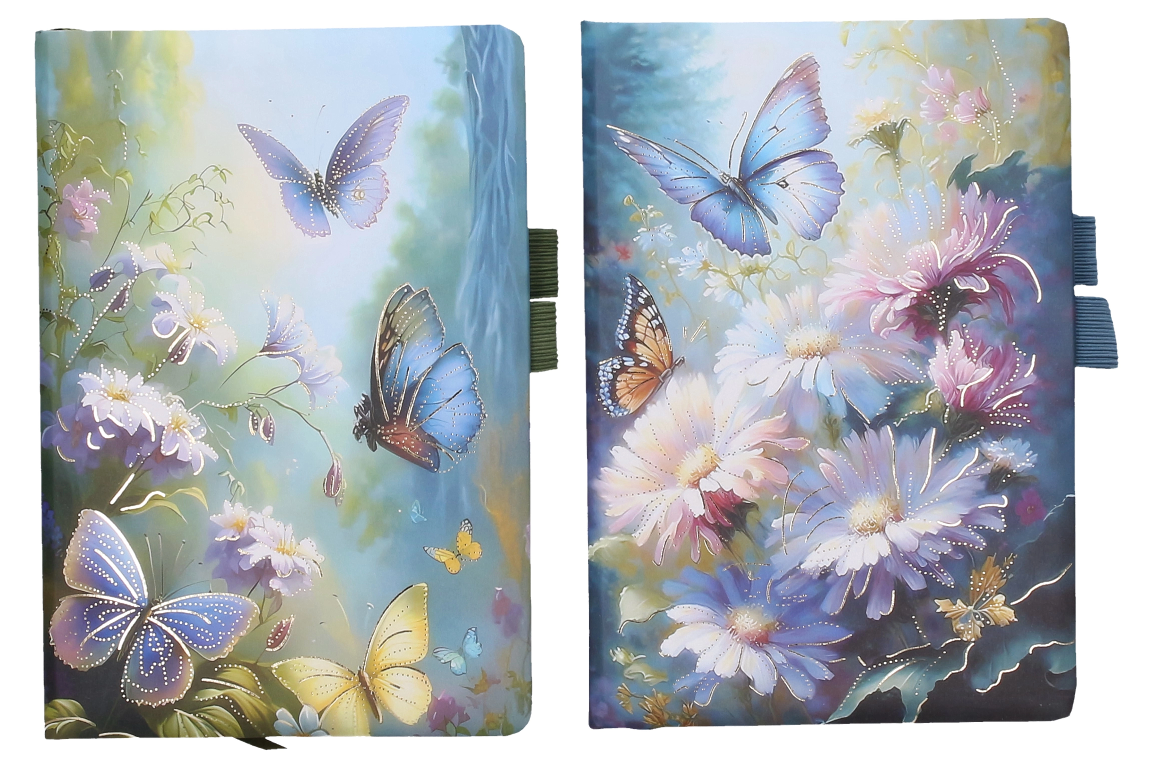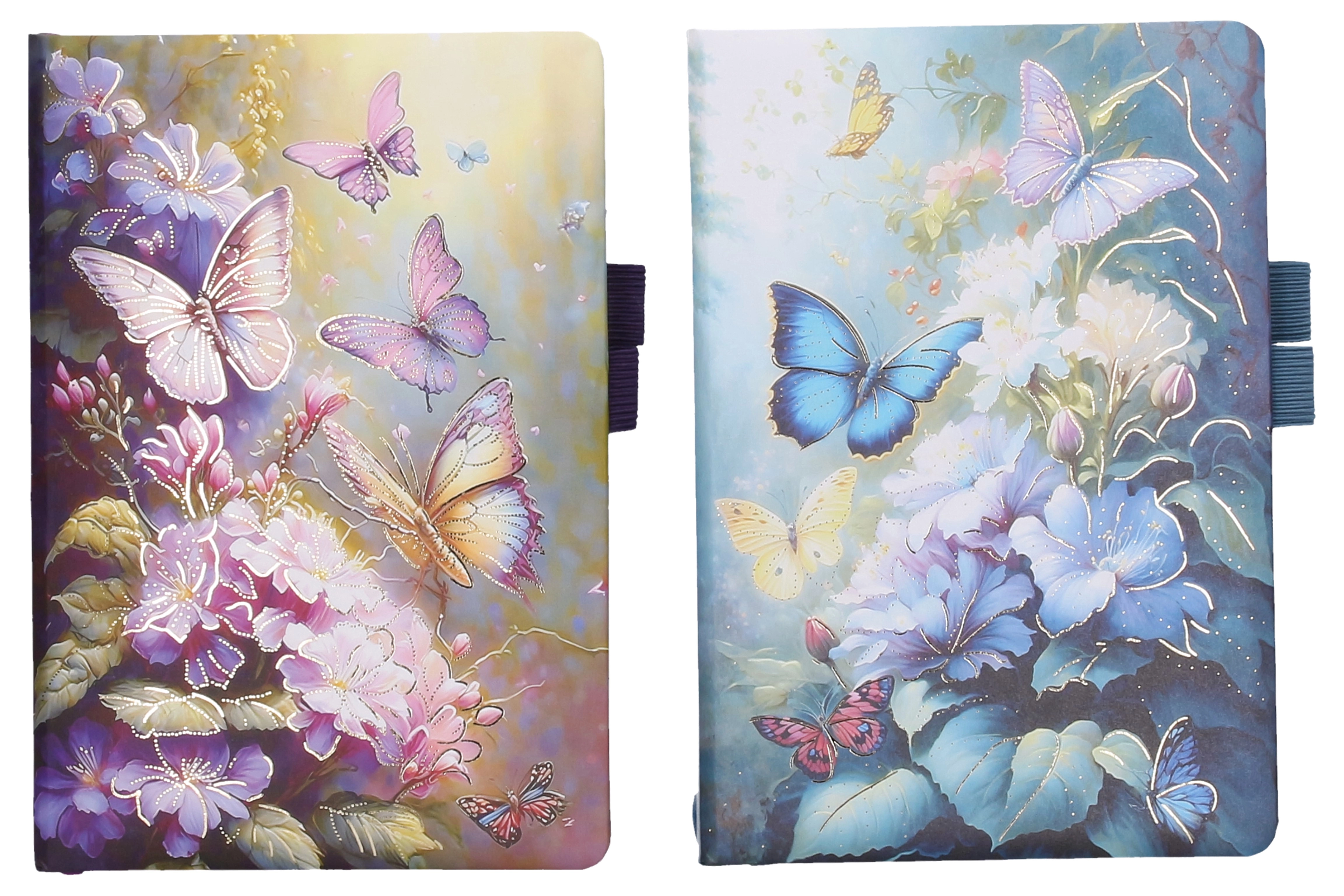 Zvezek je na voljo v 4 oblikovnih različicah z nežnimi motivi metuljev – odličen predlog za darilo in stilski dodatek na delovni mizi. Primeren za študente, ustvarjalce in vse, ki imajo radi lepo papirnico.