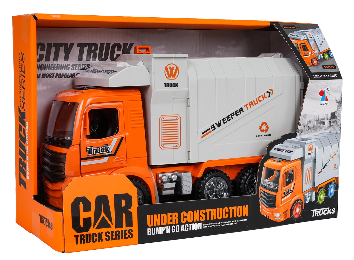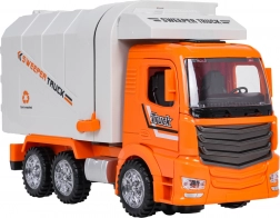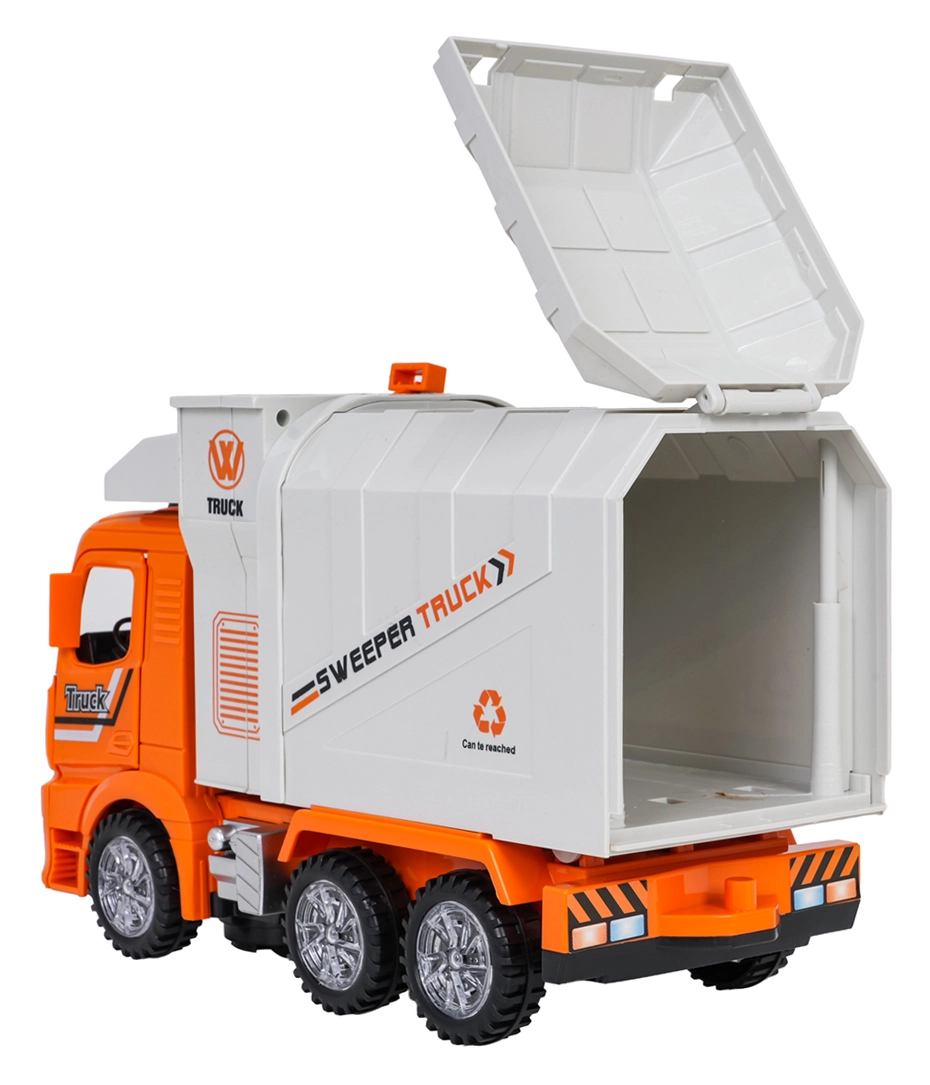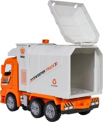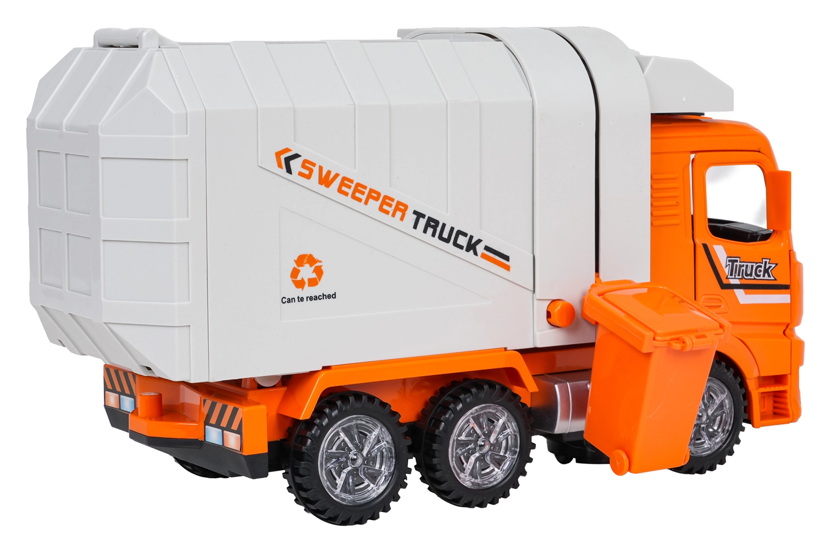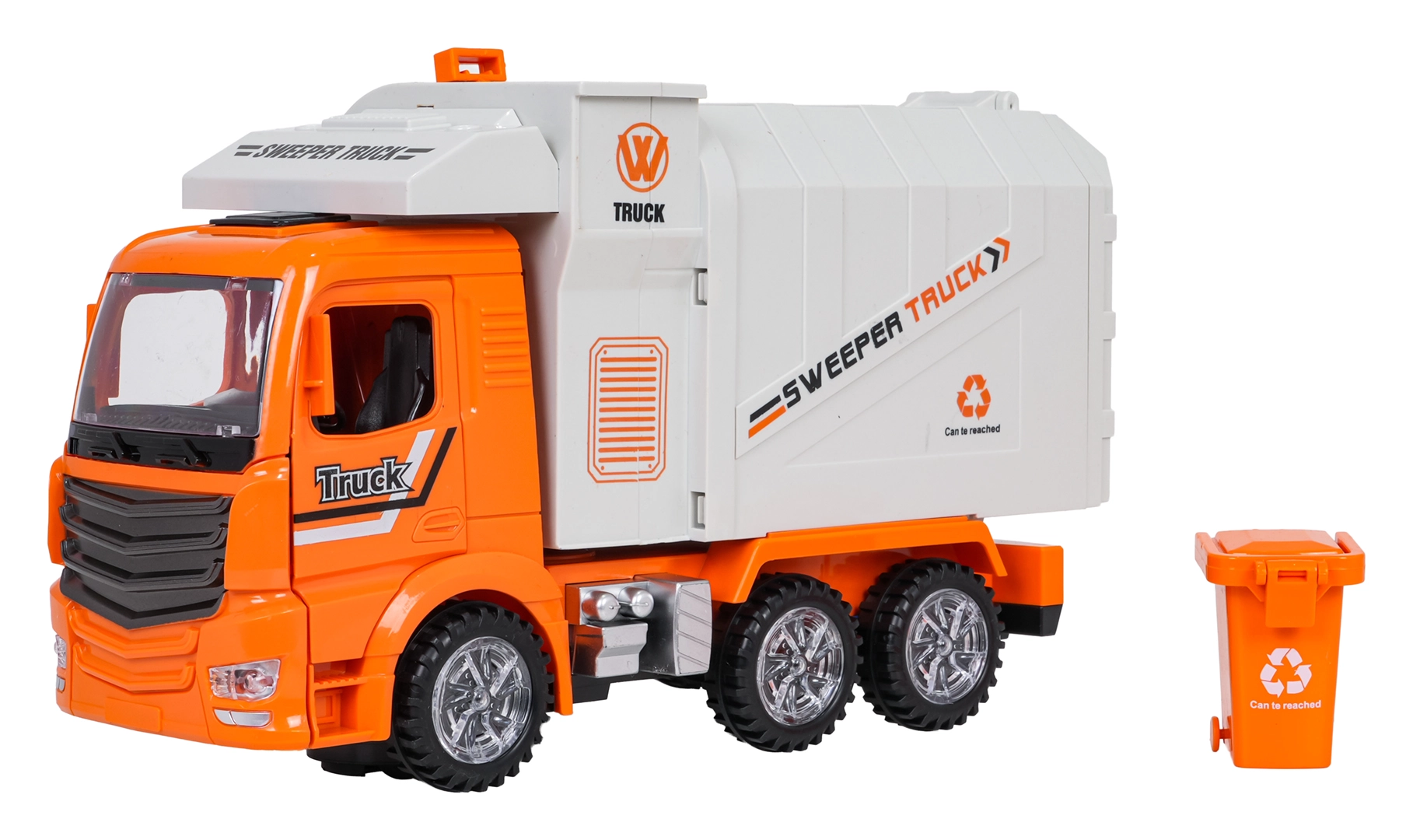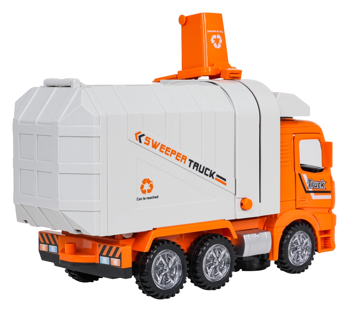 Ta oranžen smetarski tovornjak je izdelan iz kakovostne plastike z veliko pozornosti do detajlov. Zahvaljujoč svetlobnim in zvočnim učinkom otrokom prinaša avtentično doživetje mestnega prometa. Upravljanje vključuje vožnjo v vse smeri, odpirajoča se vrata ter samodejno dviganje in spuščanje zabojnika, kar spodbuja ustvarjalno in realistično igro.