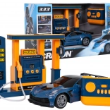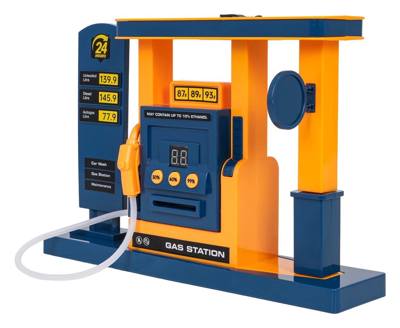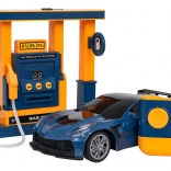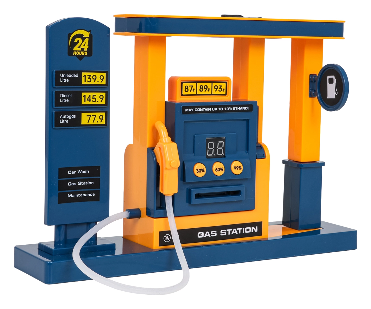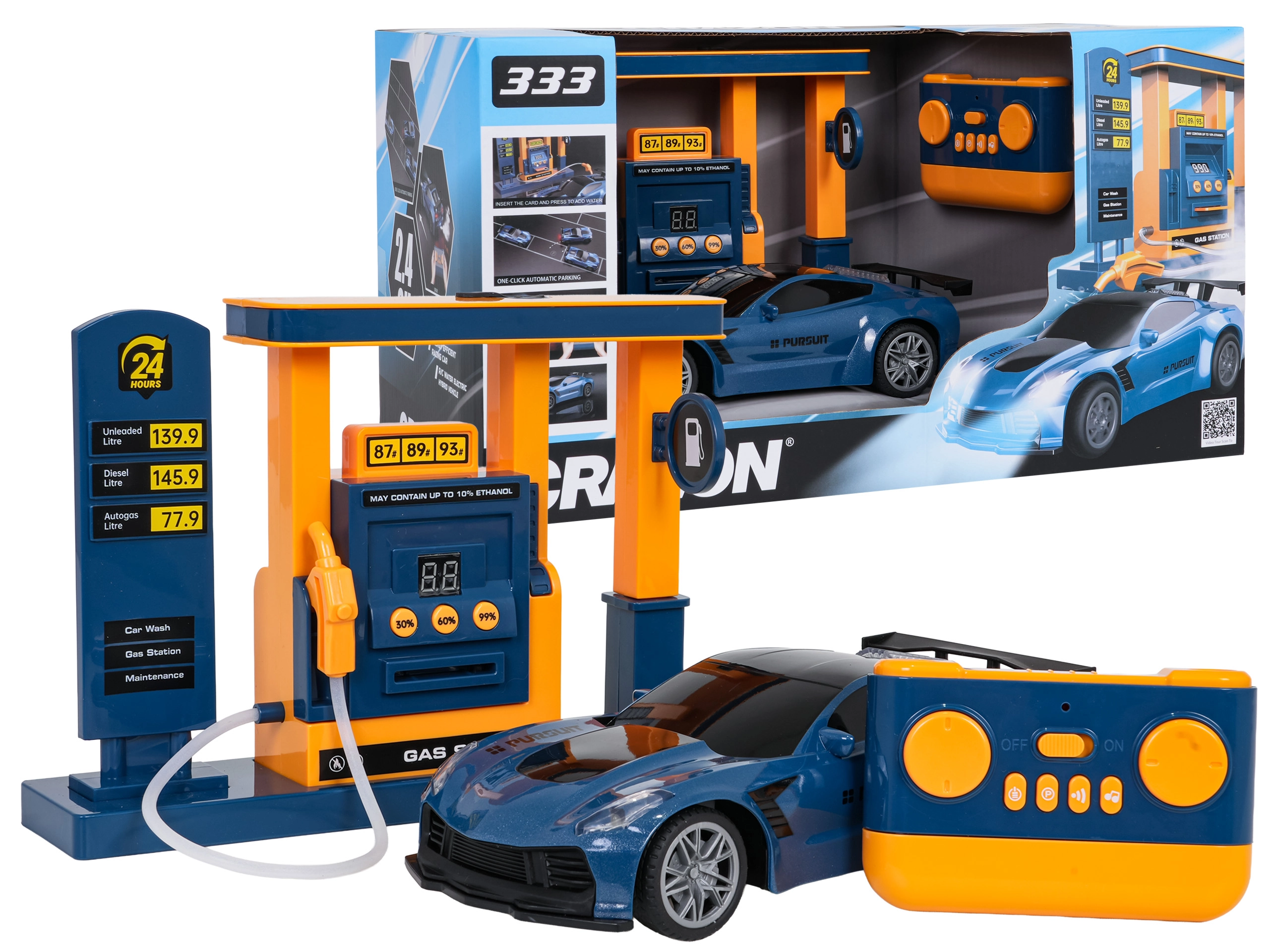 Avto je upravljan na 2,4 GHz – brez motenj, gladko in v vse smeri: naprej, nazaj, desno in levo. Ne manjkajo sprednje in zadnje luči, odporna karoserija, gumijaste pnevmatike z dobrim oprijemom ter regulacija smeri. Črpalna postaja nudi svetlobne in zvočne učinke točenja ter indikacijo nivoja »goriva«. Za udobno igro lahko izklopite zvoke in uporabite samodejno parkiranje z upravljalnika.