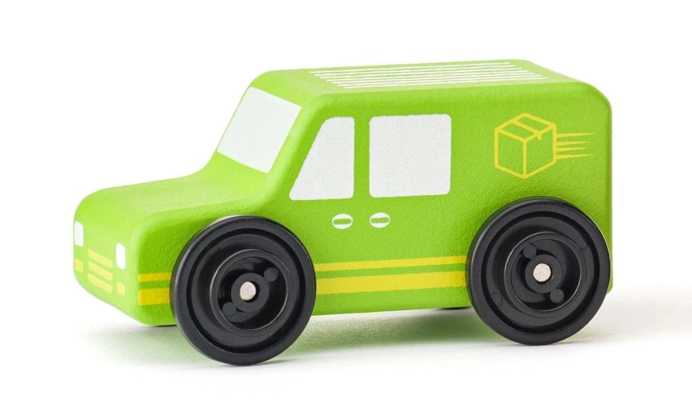 Igra z vozili spodbuja razvoj koordinacije oko–roka, prostorske predstavljivosti in socialnega učenja. Robustna lesena konstrukcija in gladka kolesa zagotavljajo tekočo vožnjo po katerikoli ravni podlagi, doma ali v vrtcu.