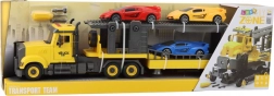 Odkrijte večnamensko igračo, ki združuje konstrukcijsko zabavo s prometno pustolovščino. Velik vlečni tovornjak prevaža tri športne avtomobile, ki jih je mogoče odstraniti in se z njimi igrati samostojno. Vgrajeni svetlobni in zvočni učinki poskrbijo za pristnejšo igro, priloženi izvijač s 3 zamenljivimi nastavki pa otrokom omogoča razstaviti in znova sestaviti izbrane dele vozila.