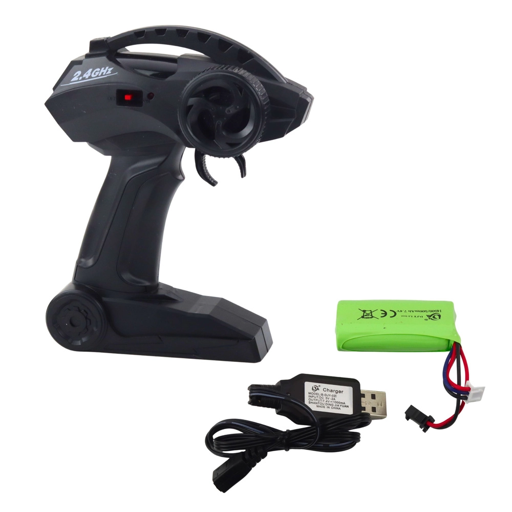 Sodoben radijski sistem 2,4 GHz omogoča tekoče krmiljenje tudi pri vožnji več RC modelov hkrati. Ergonomski ročni (pištolski) upravljalnik odlično sede v roko in omogoča natančno doziranje plina ter krmiljenja.