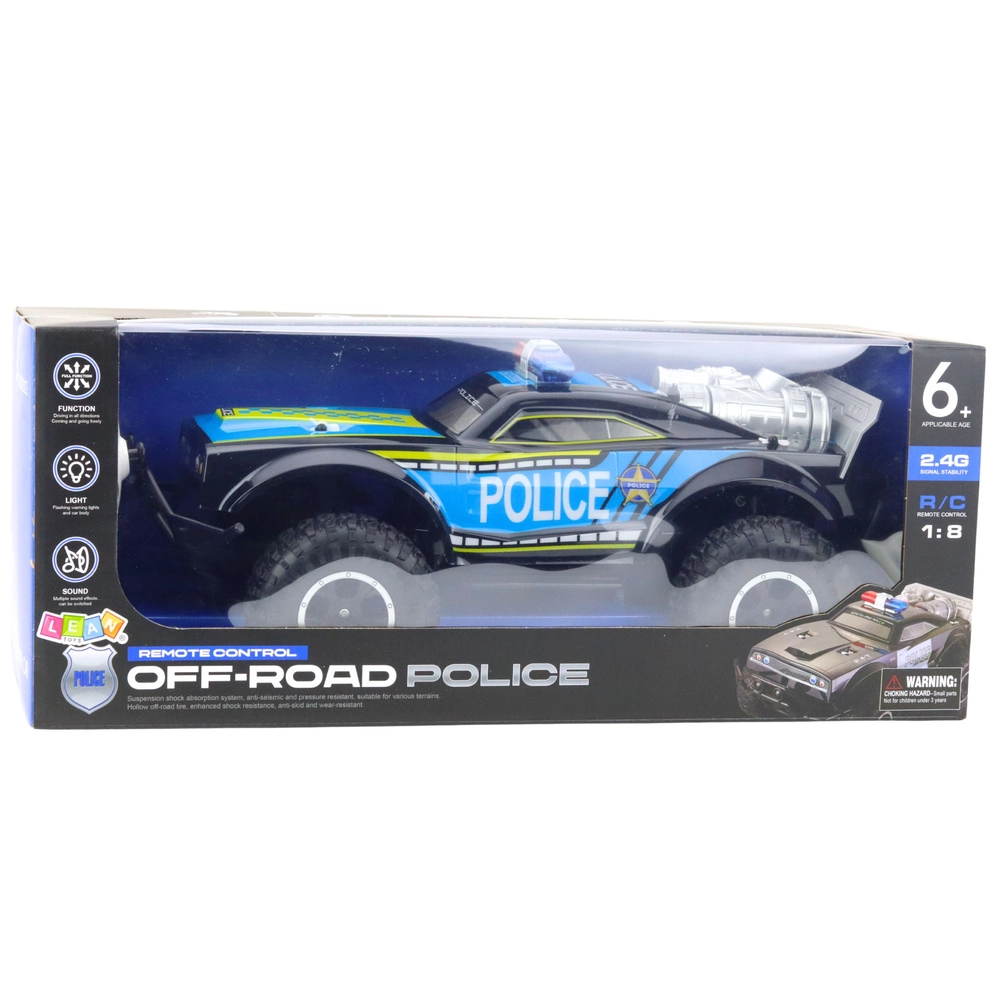 Hitri in vzdržljivi policijski terenski daljinsko voden avto v merilu 1:8 prinaša akcijsko zabavo na cesti in v terenu. Zahvaljujoč zmogljivemu pogonu, gumijastim pnevmatikam, vzmetenemu podvozju in frekvenci 2,4 GHz omogoča gladko vožnjo brez motenj. Realistični svetlobni in zvočni učinki (luči, sirena, motor) okrepijo vsak policijski lov.