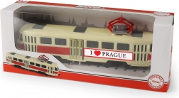 Ta kovinski retro tramvaj T3 je ikona praških ulic in legenda med vozili javnega prevoza. Odlikujejo ga podrobno izdelano ohišje, realistična okna in funkcionalni pantograf na strehi. Zahvaljujoč vzvratnemu mehanizmu se po navijanju gladko požene in razveseli tako otroke kot odrasle zbiratelje.