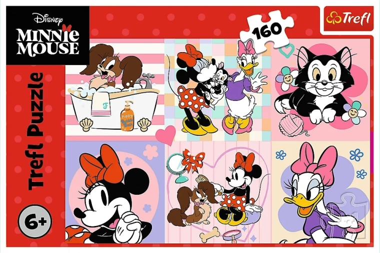 Sestavljanka DISNEY Minnie z motivom Barvit dan, 160 koščkov. Velikost po sestavitvi 41 × 27,8 cm. Zabava za otroke, razvoj potrpežljivosti in logičnega razmišljanja.