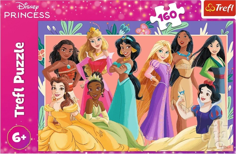 Sestavljanka DISNEY Princeske Prave princeske, 160 koščkov. Čudovit motiv, kakovostna izdelava, velikost po sestavljanju 41 × 27,8 cm. Odlično darilo za otroke.