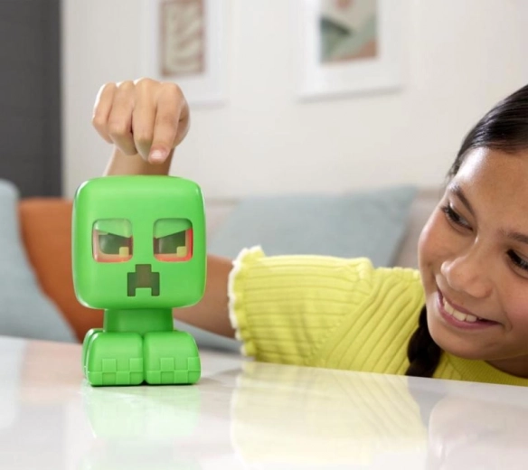 Priljubljena pošast iz igre MINECRAFT oživi kot interaktivna igrača: Creeper z lučmi in zvoki. Dovolj je nežno božanje po glavi in igrača reagira – vendar se ob pretiranem draženju “razleti” na koščke za še več zabave. Odlično darilo za male in velike oboževalce.