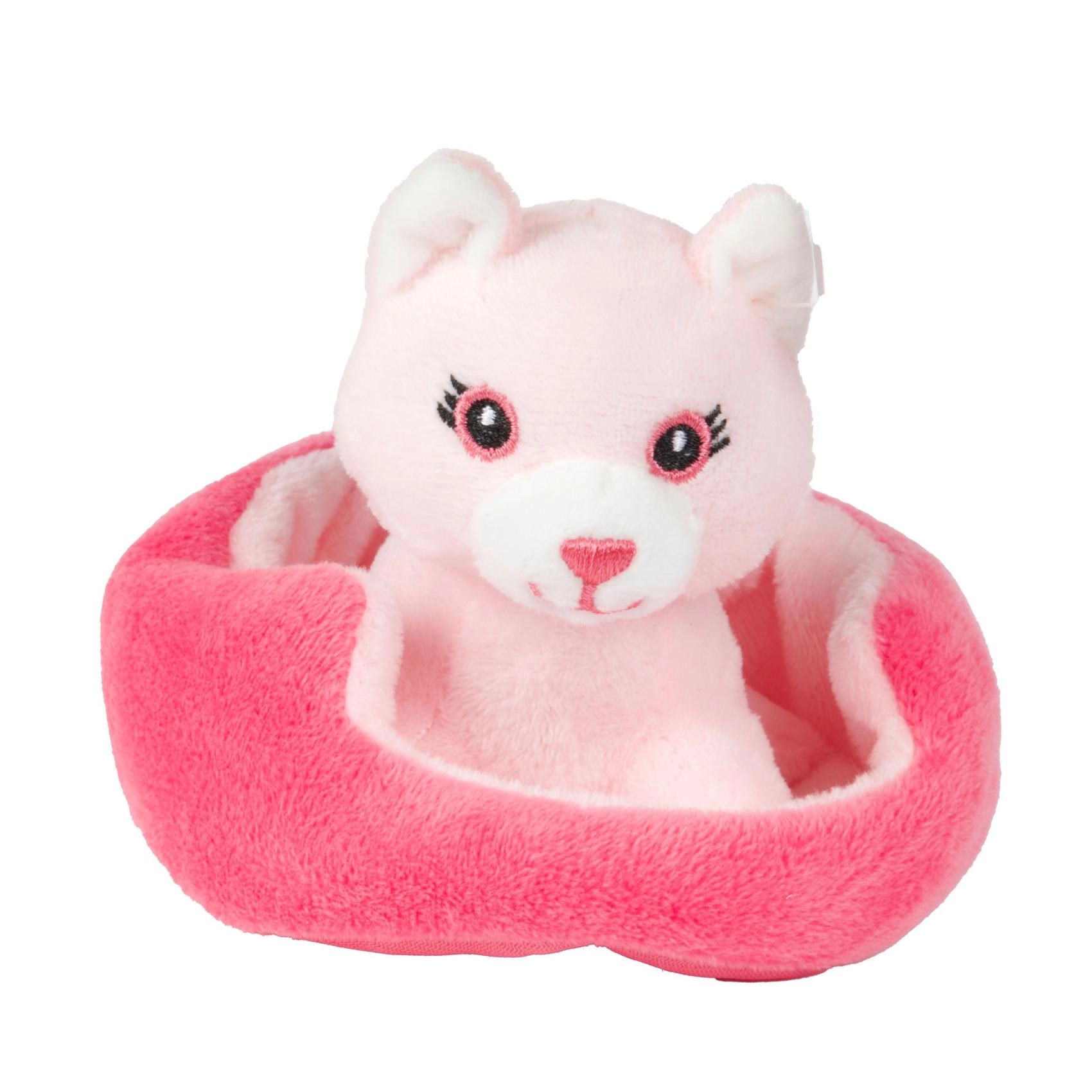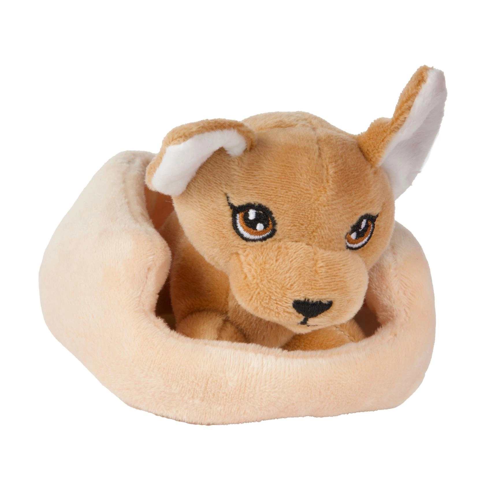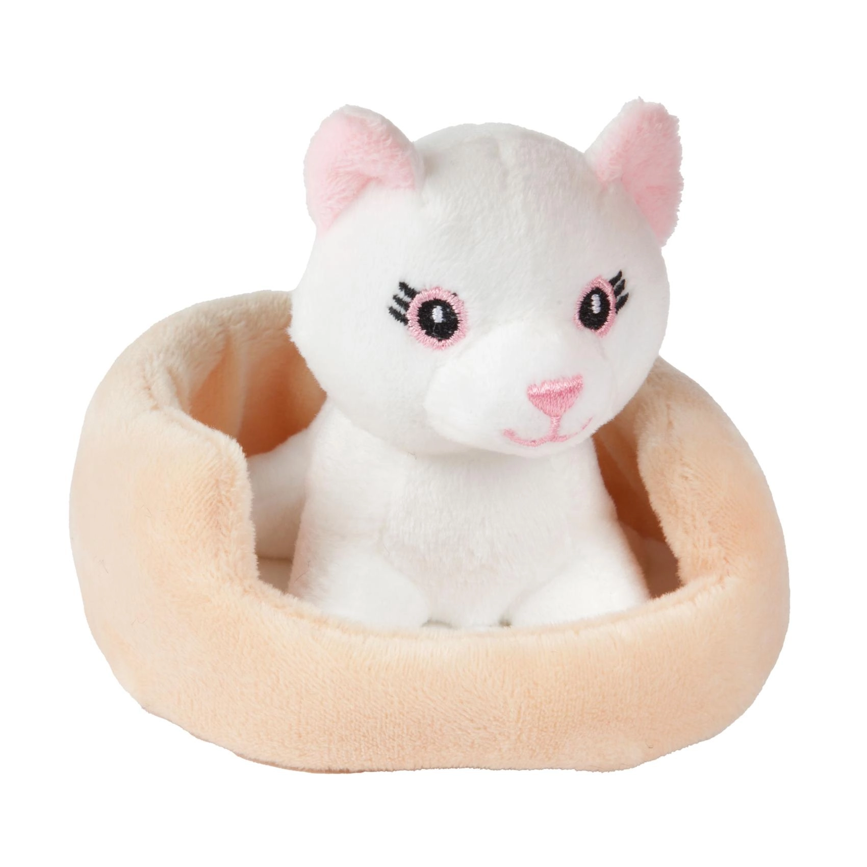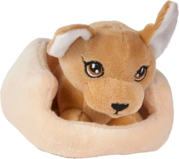 Ta prisrčna plišasta mucka ali kužek v udobnem gnezdcu je popoln prijatelj za vsakodnevno igro in uspavanje. Zahvaljujoč mehkemu plišu in kompaktni velikosti ga zlahka držijo tudi najmlajše ročice, hkrati pa spodbuja domišljijo in skrbne igre.