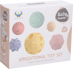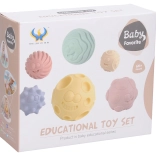 Zabaven set motoričnih žogic za otroke podpira fino motoriko, senzorično zaznavanje in taktilno raziskovanje. Vsebuje 6 mehkih žogic s premerom 6 cm z različnimi teksturami, ki so varne za majhne roke in ob stisku piskajo za še večjo senzorično stimulacijo.