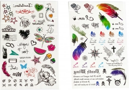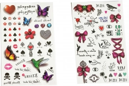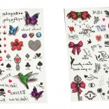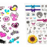 Odkrijte pisan svet začasnih tetovaž za deklice. Na vsakem listu najdete desetine prikupnih motivov v različnih velikostih – od metuljčkov in rož do srčkov, pentljic in zvezdic. Zaradi preprostega postopka jih lahko nanesejo tudi otroci pod nadzorom odraslih. Tetovaže so idealne za zabave, karnevale, darila v party paketkih in kot kreativni okras za vikend.