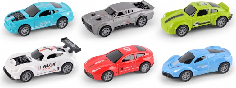 Odkrijte komplet kompaktnih kovinskih dirkalnih avtomobilčkov, ki so idealni za otroške roke in domače dirke. Zahvaljujoč robustnemu kovinskemu ohišju in prosto vrtečim kolesom je vožnja gladka in zabavna na različnih površinah. Različne barvne različice in potiski prinašajo v igro raznolikost in spodbujajo domišljijo.