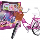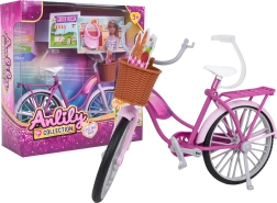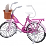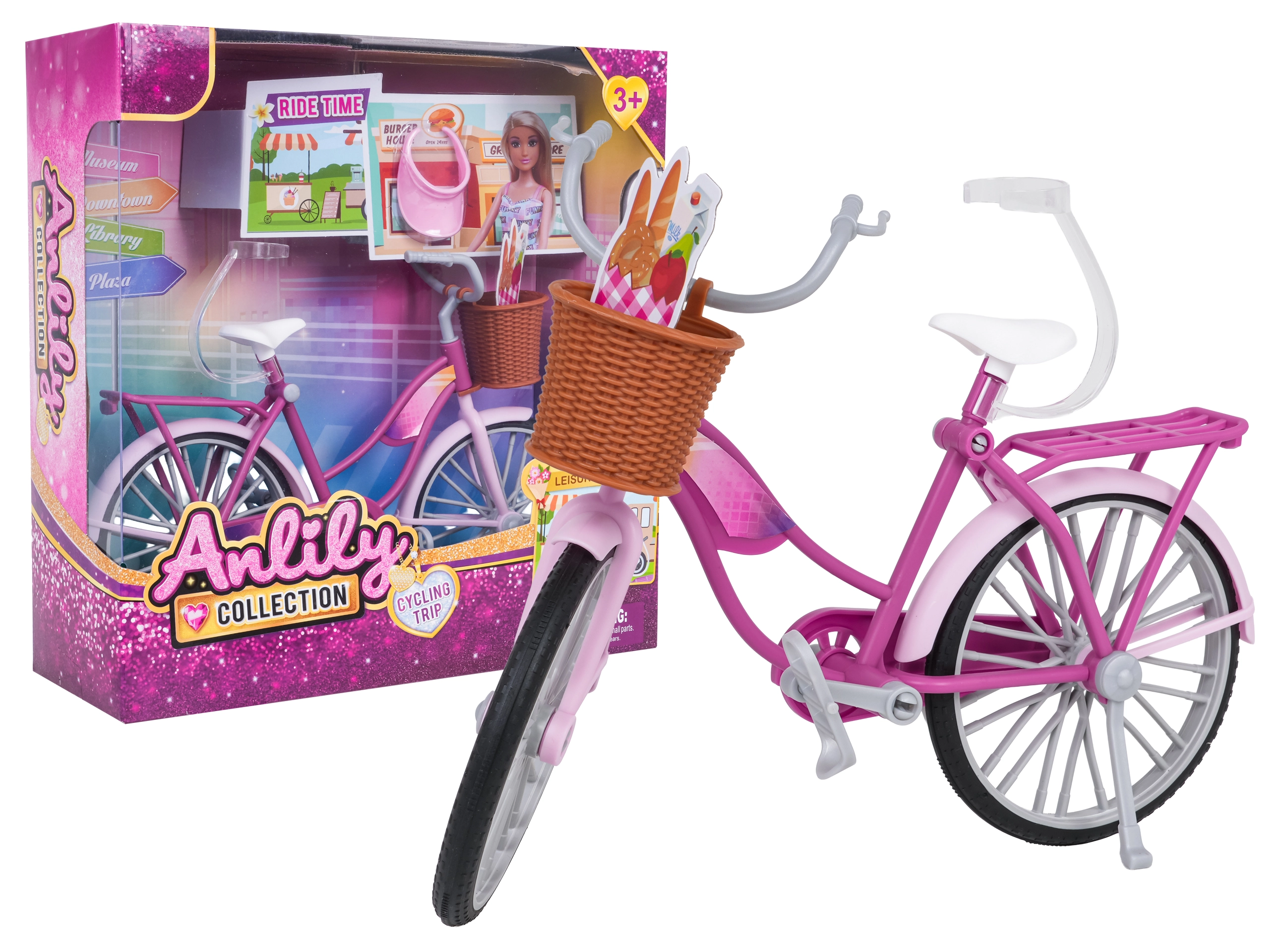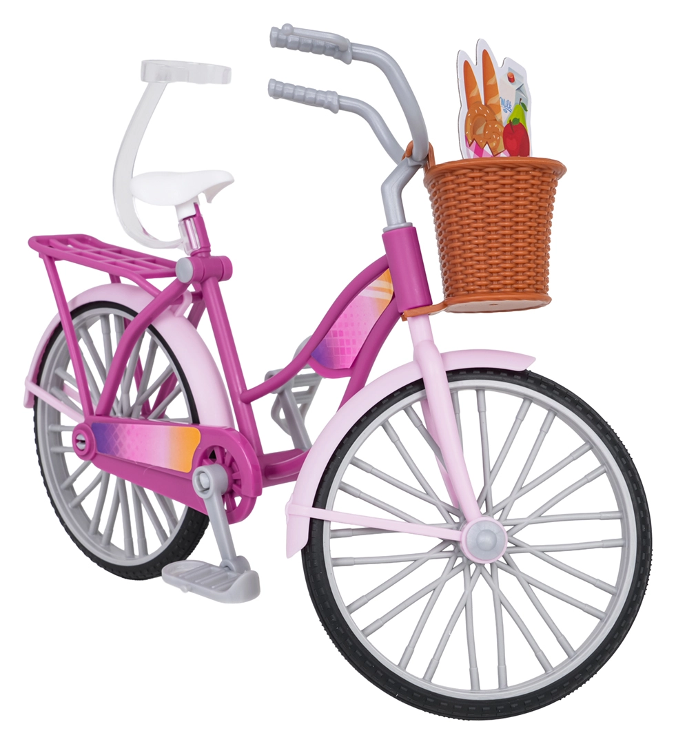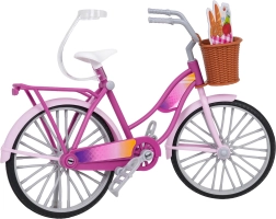 Prisrčno rožnato kolo za punčke navduši malčke od 3 let. Ima podrobno izdelano okvirno konstrukcijo, premična kolesa, pedala in krmilo, sprednjo košarico za malenkosti ter zadnji prtljažnik. Del kompleta sta tudi stojalo za stabilno parkiranje in kapa s šiltom za punčko. Izdelano iz kakovostnih materialov v živih barvah – idealno kot izvirno darilo za male ljubitelje igre vlog.