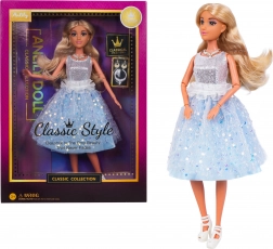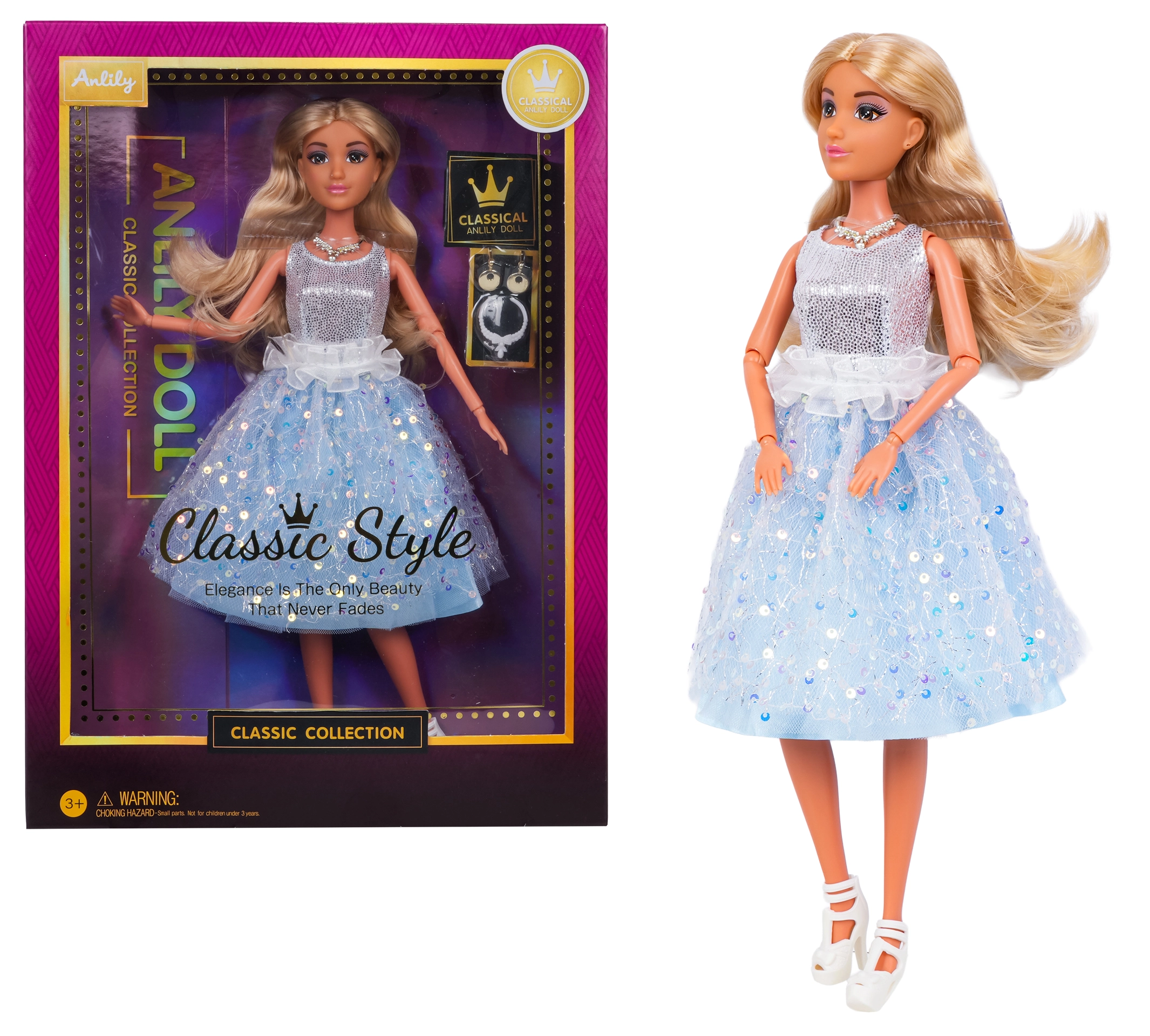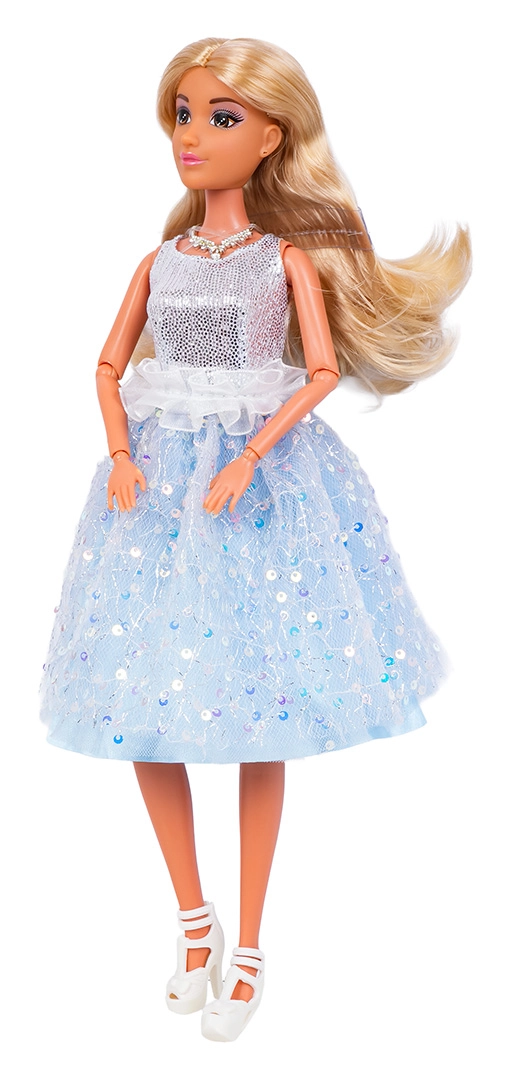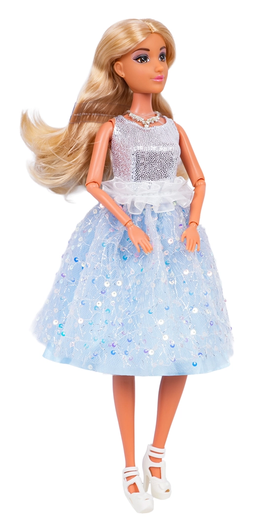 Stilska lutka za otroke od tretjega leta je izdelana iz kakovostnih materialov z ozirom na detajle. Ima realistične, dolge in mehke lase, primerne za česanje in pletenje, bleščečo večerno obleko ter bele salonarje s peto. Premični udi s sklepi v komolcih in kolenih omogočajo naravne poze in še bolj zabavno igranje modnih revij ali plesov.