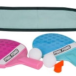 Zabaven in preprosto sestavljiv set za namizni tenis za otroke od 3 let naprej. S pomočjo priseskov ga hitro pritrdite na gladko mizo in lahko takoj igrate. V kompletu sta dve loparji, dve žogici, mreža s plastičnimi stebrički, priseski ter tudi piščalka. Idealno za domačo zabavo in kot darilo. Preprosta montaža, aktivna prostačasna igra, primerno za mlajše in starejše otroke.