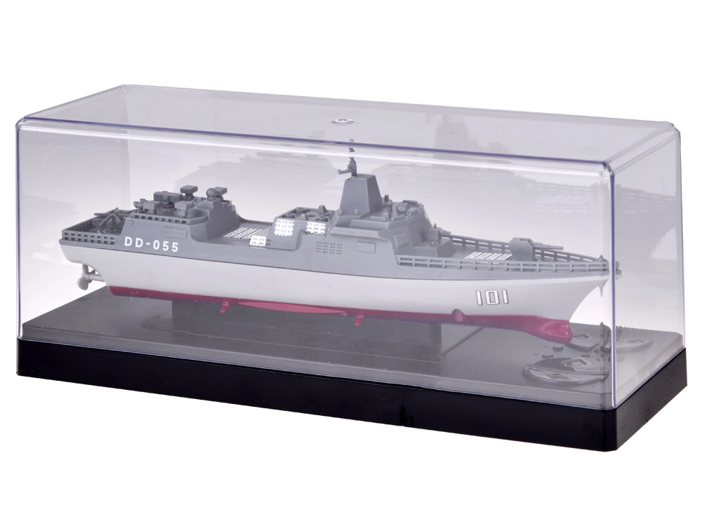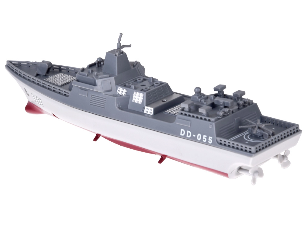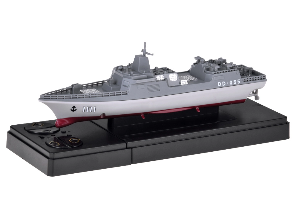 Odkrijte moč oceanov z modelom RC torpedoborca DD-055. Ladja v sivo-rdeči barvni kombinaciji verno posnema moderni raketni torpedoborec in navduši z bogatimi podrobnostmi – od palubnih elementov do pristajalne ploščadi za helikopter. Zaradi kompaktne velikosti se odlično upravlja in hkrati izstopa na polici v mini vitrini, ki je del pakiranja.