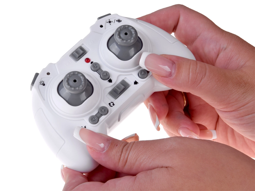 Z enim gumbom vzleti in pristane, ima nujno zaustavitev ter opozorilo na nizek nivo baterije. Tri stopnje hitrosti (30/60/100 %) vam omogočajo prilagoditev dinamike leta. Za efekten nastop preprosto vklopite 360° obrate – dron izvede impresivne akrobacije okoli lastne osi.
