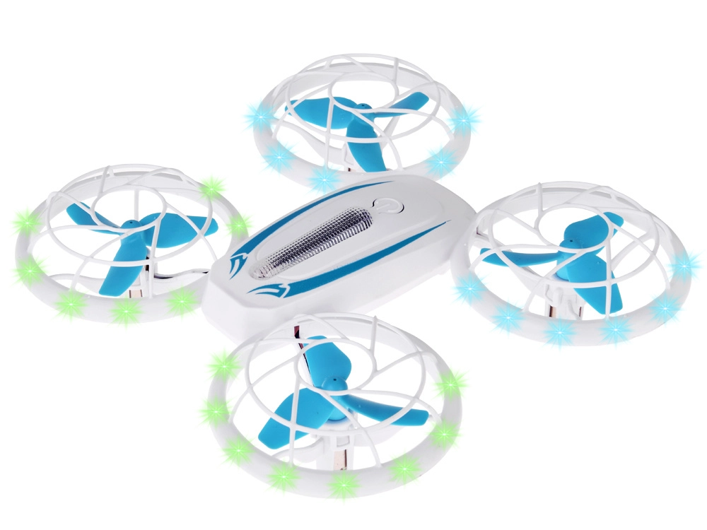 Odkrijte zabavo s kompaktnih LED dronom, ki združuje preprosto upravljanje in varno zasnovo. Zaradi zaščit rotorjev je primeren za letenje v notranjih prostorih, medtem ko stabilizacija leta in Headless način olajšata pilotiranje. Vidne LED diode spredaj in zadaj povečajo pregled nad smerjo in privlačnost leta tudi ob mraku.
