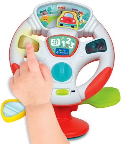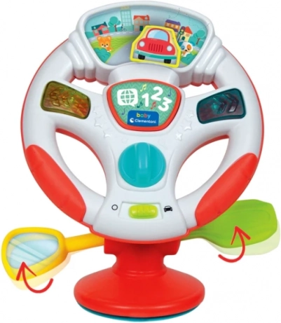 Interaktivni otroški volan CLEMENTONI z lučkami, zvoki in govornimi aktivnostmi na zabaven način razvija fino motoriko in čute. Ponuja učenje števil, pesmice, živalske zvoke ter realistične igralne elemente, kot so ključ za vžig, ročica in zrcalce. Praktična priseska zagotavlja stabilnost na mizi ali otroškem stolčku.