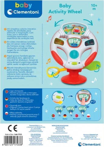 Odkrijte veselje prve “vožnje” z interaktivnim volanom CLEMENTONI. Ko zavrtite volan, se avtomobilček na barviti cesti premika desno ali levo in aktivira vsebine, povezane s pravo vožnjo. Svetlobni LED učinki, realistični zvoki in vesele melodije spodbujajo zaznavanje in osredotočenost.
