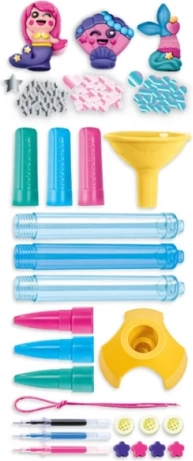 S kreativnim kompletom CLEMENTONI IDEA bodo otroci izdelali 3 izvirna peresa z morskimi motivi in plavajočimi okraski. Enostavna uporaba zahvaljujoč priročnima stojalu in lijaku zagotavlja udobno polnjenje brez nereda. Končni rezultat je učinkovit – drobne dekoracije v notranjosti peresa se po napolnitvi prosto zibljejo v vodi in ustvarjajo čaroben videz.