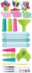 V pakiranju boste našli popolno opremo, vključno z barvnimi črnili, prozornimi cevčicami, okraski, perlicami in gumijastimi figuricami. Otroci lahko tako oblikujejo svoj slog, kombinirajo barve in dodatke ter razvijajo svojo ustvarjalnost in spretnost.