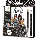 Odkrijte ustvarjalni komplet flomastrov Artissimo, idealen za ljubitelje MANGA stripov. Vsebuje 10 dvostranskih alkoholnih flomastrov z dvejema konicama za fine linije in polno barvanje ter 1 črn konturirni flomaster za natančne obrise in detajle. Odlična izbira za otroke od 10 let, ki želijo razvijati svoj risarski talent.