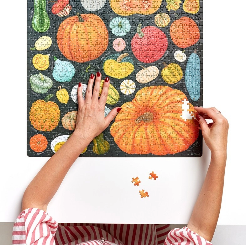 Potopite se v zlato jesensko razpoloženje s sestavljanko Puzzlove Buče. Desetíne osupljivih buč naravnost z njive ustvarjajo podrobno, estetsko sceno, ki bo navdušila ljubitelje oblikovanja in sestavljanja. 1000 koščkov ponuja prijetno mero zahtevnosti in vas nagradi s čudovito podobo, ki jo lahko uokvirite in razstavite.