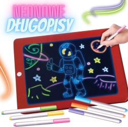Odkrijte zabavo brez nereda: rišite, brišite in začnite znova – brez papirja. LED osvetlitev z osmimi učinki razsvetli risbe v neonske barve, ki odlično izstopajo tudi v poltemi. Tablica je idealna za otroke od 3 let in spodbuja veselo učenje ter igro.