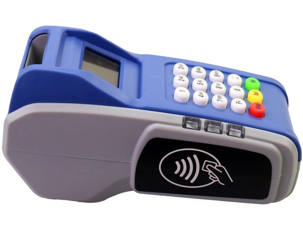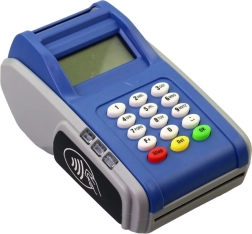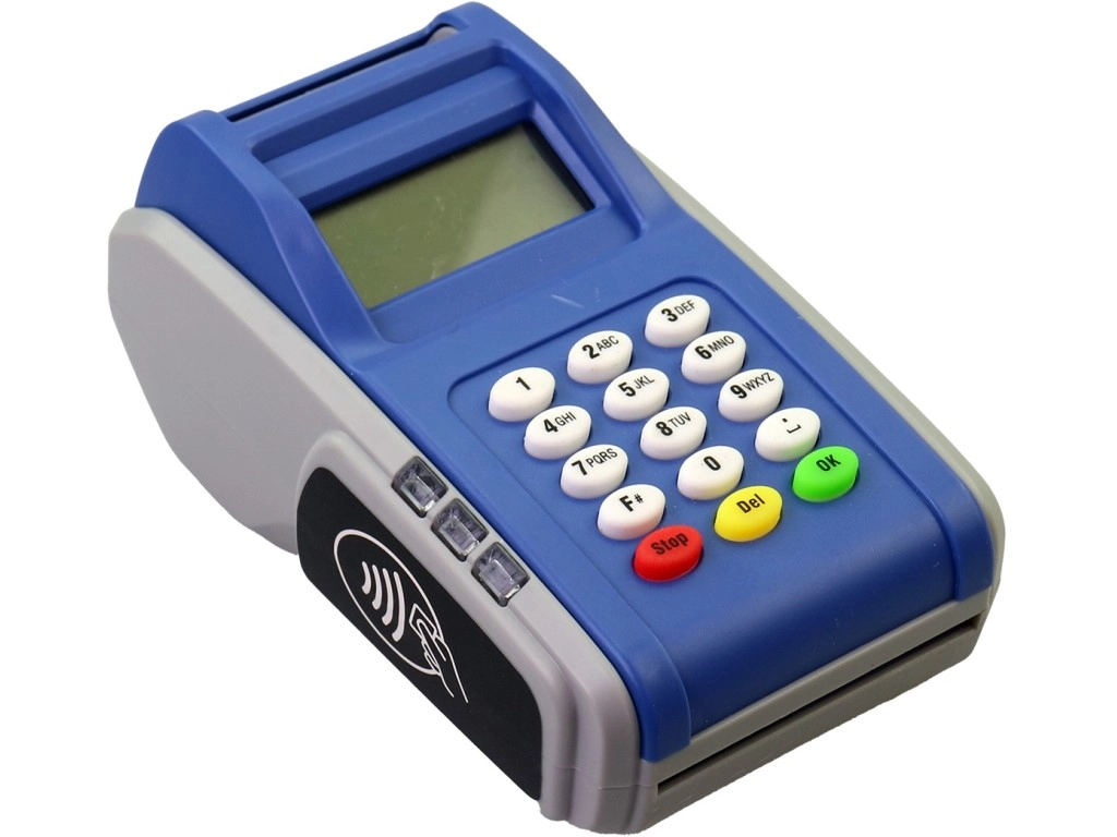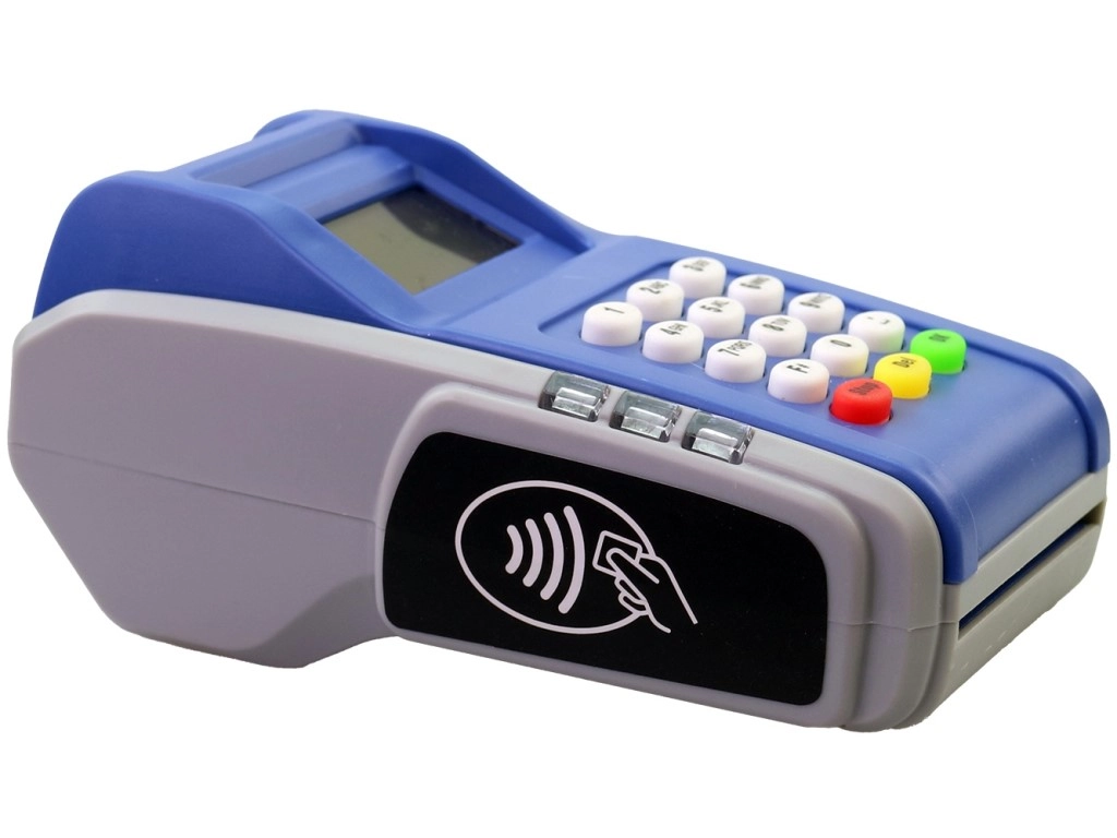 Majhen zaslon, številčna tipkovnica in barvni funkcijski gumbi otroke na zabaven način učijo vnašati zneske in potrjevati plačila.