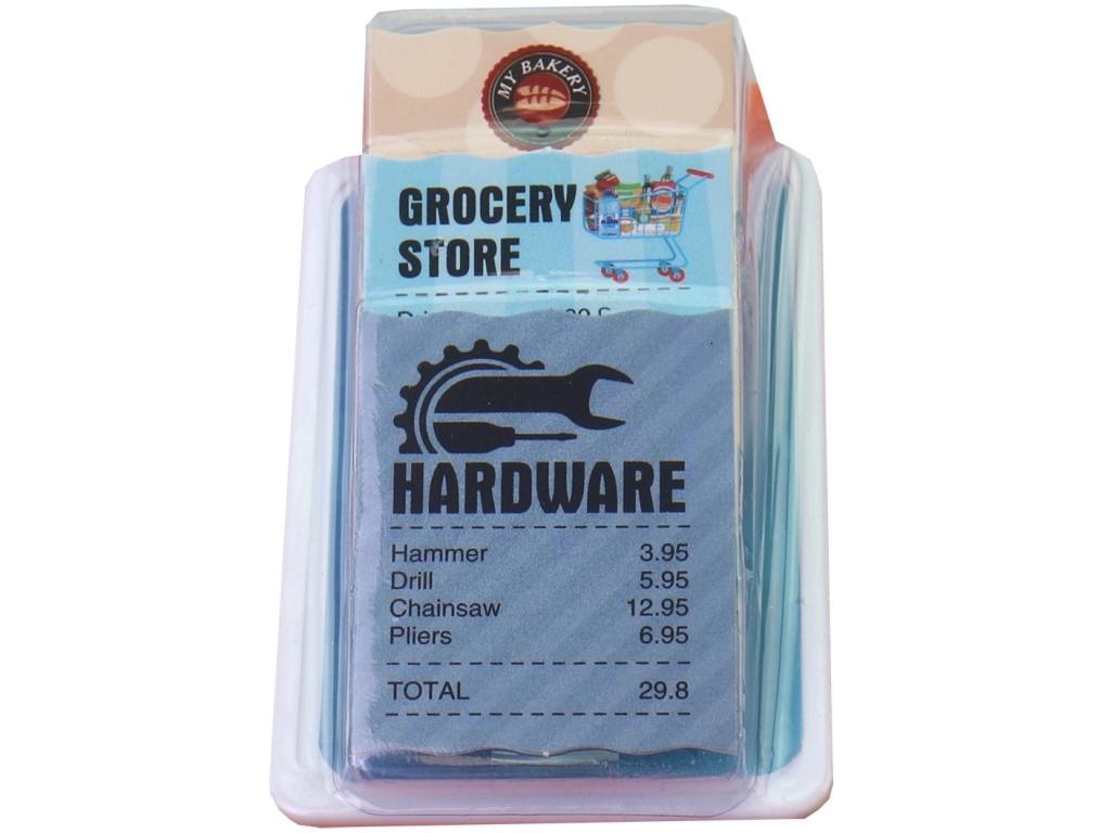 Lahka plastična naprava je prijetna na otip in odporna na vsakodnevno uporabo. Izdelek je namenjen otrokom od 3 let dalje in deluje na tri baterije AAA (niso priložene), zato je dovolj vstaviti baterije in začeti igro plačevanja kot pri pravi blagajni.