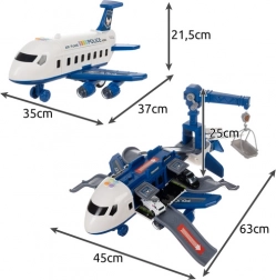 Zložljivo policijsko letalo otrokom prinaša akcijski svet reševalnih služb v eni igrači. Po odprtju se spremeni v dovršeno parkirišče s prevoznimi rampami, garažami in zabavnimi funkcijami. Zahvaljujoč svetlobnim in zvočnim učinkom ter pogonu na zadnja kolesa bodo otroci doživeli realistično igro, polno zasledovanj in reševalnih misij.