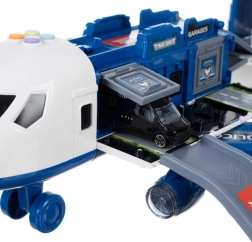 Po odprtju se letalo spremeni v igralno površino s prevoznimi rampami, garažami in prostori za vozila. Odlično za ustvarjalne policijske misije.