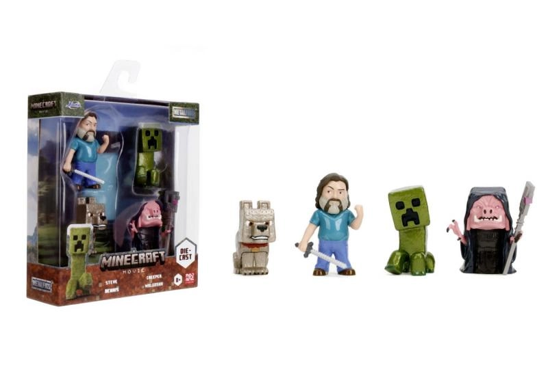 Doživite svet MINECRAFT MOVIE doma s tem zbirateljskim setom štirih kovinskih figuric, visokih približno 6,5 cm. V pakiranju najdete Steva z orožjem, Volka, ikoničnega Creeperja in skrivnostni lik Malgosha. Figurice imajo vzdržljivo kovinsko izdelavo, natančno barvanje in so idealne za zbiratelje in otroško igro.