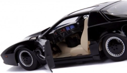 Podoživite legendo osemdesetih z podrobno izdelanim modelom vozila KITT iz serije KNIGHT RIDER. Ta kovinski model v merilu 1:24 zvesto zajema oblike in značaj ikoničnega športnega avtomobila, vključno z zadnjim spojlerjem, zatemnjenimi okni in značilnim »KNIGHT RIDER« detajlom na zadku.