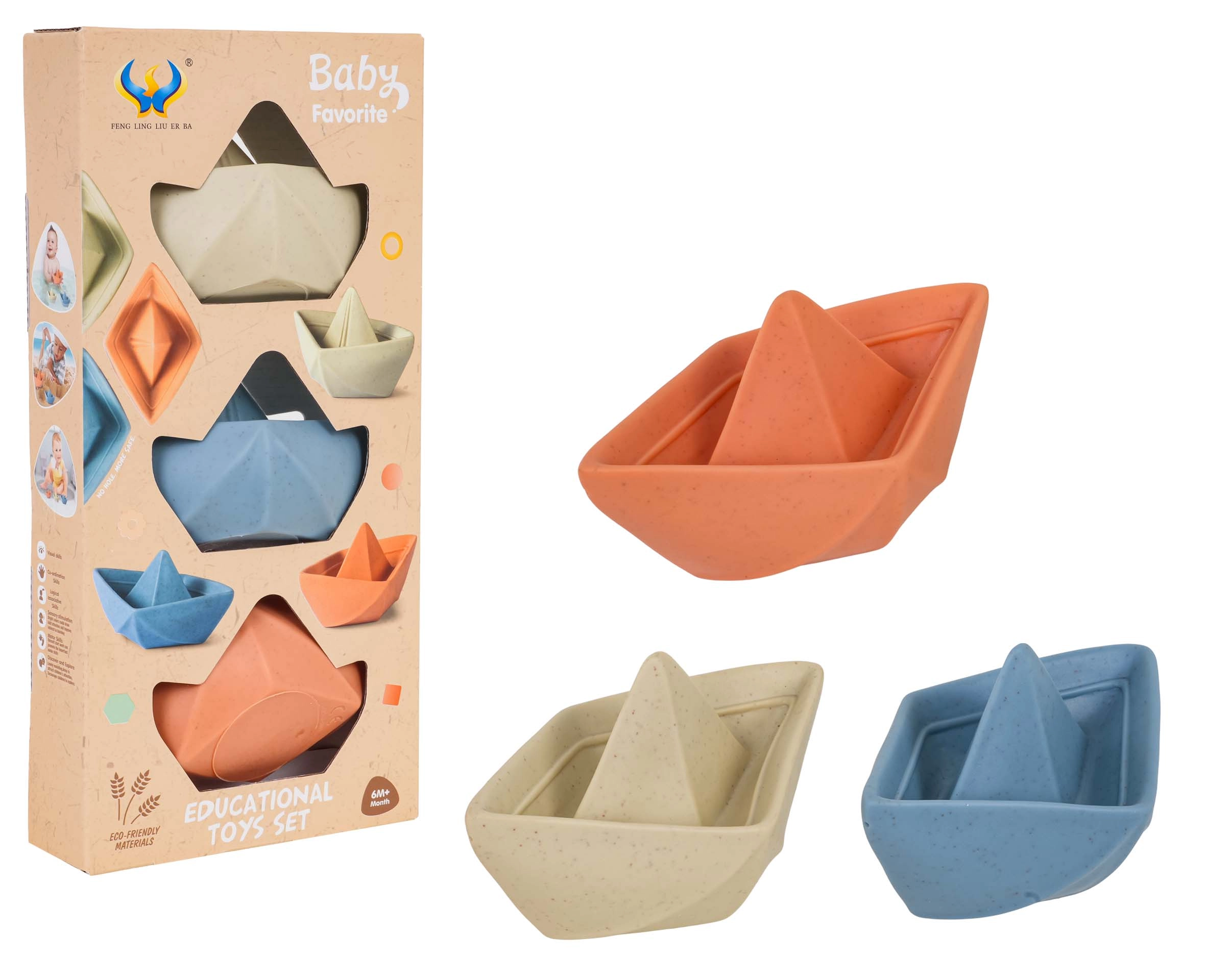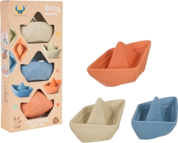 Ta komplet treh ljubkih čolničkov prinaša otrokom veliko zabave med kopanjem in igro na suhem. Trpežen, na otip prijeten material brez škodljivin je nežen do otroške kože in enostaven za vzdrževanje. Zaradi priročne oblike se čolnički zlahka zložijo en na drugega in pospravijo.